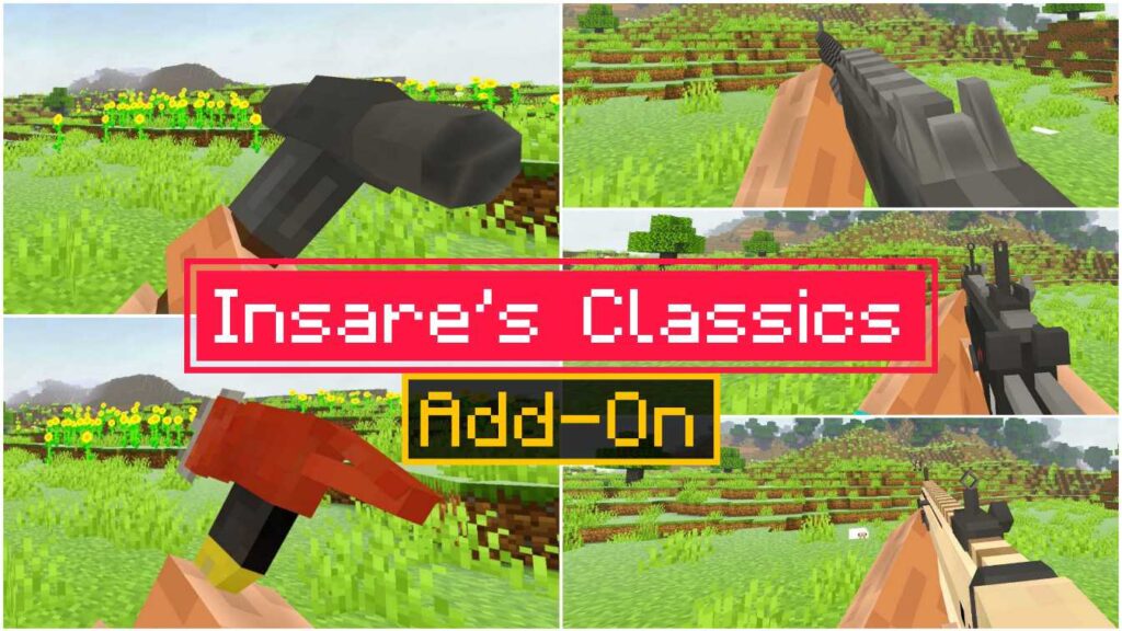 Insare’s Classics addon brings high-quality 3D guns and melee weapons to Minecraft Bedrock Edition. If you enjoy modern combat gameplay,